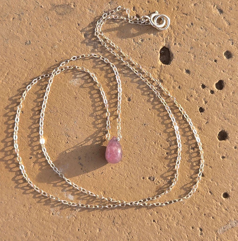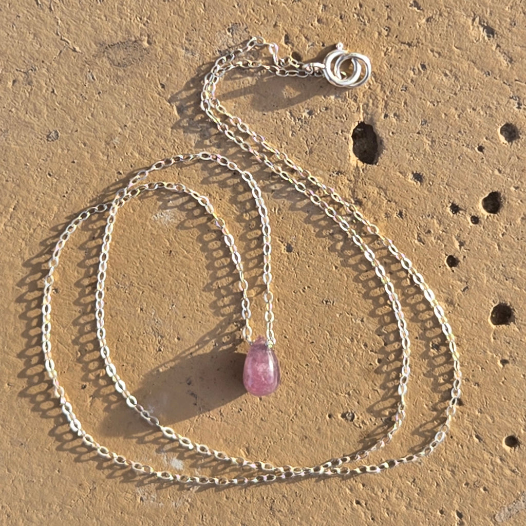 Pink Tourmaline Briolette Sterling Silver Necklace
