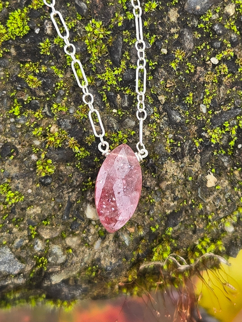 Strawberry Quartz Faceted Marquise Sterling Silver Necklace
