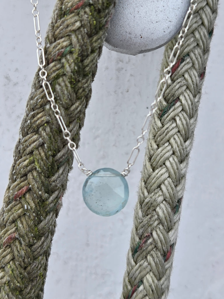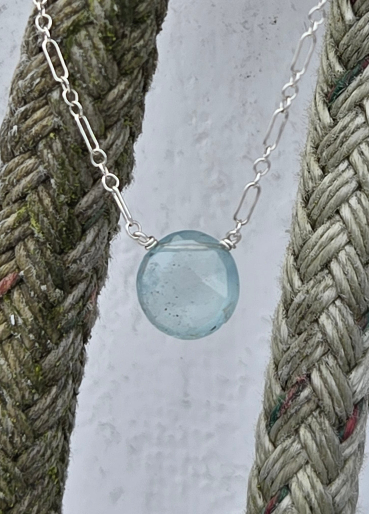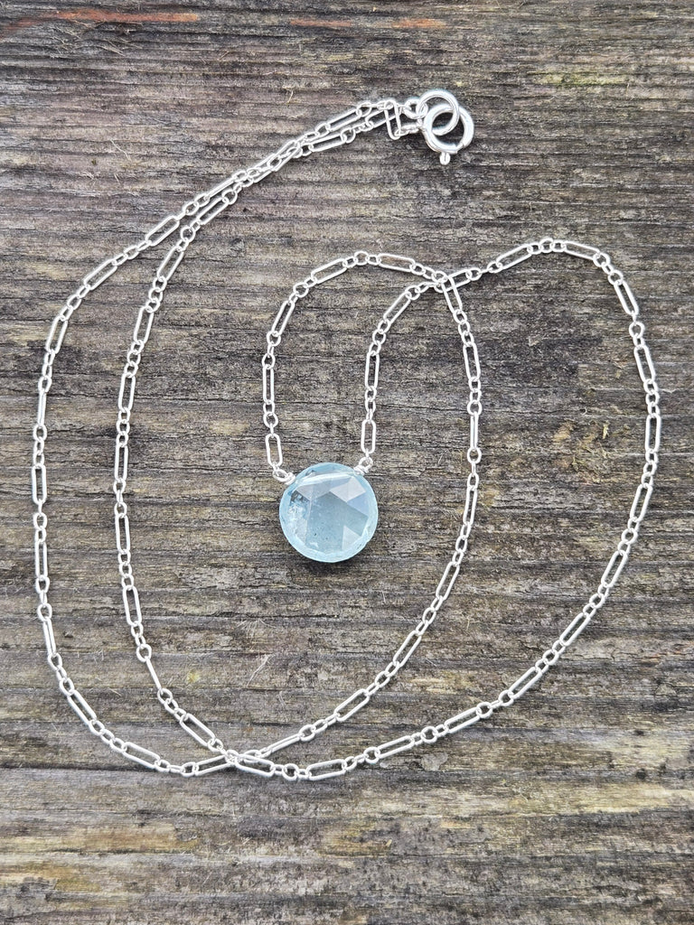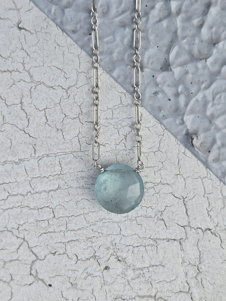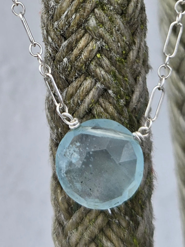 Aquamarine Faceted Disc Sterling Silver Necklace