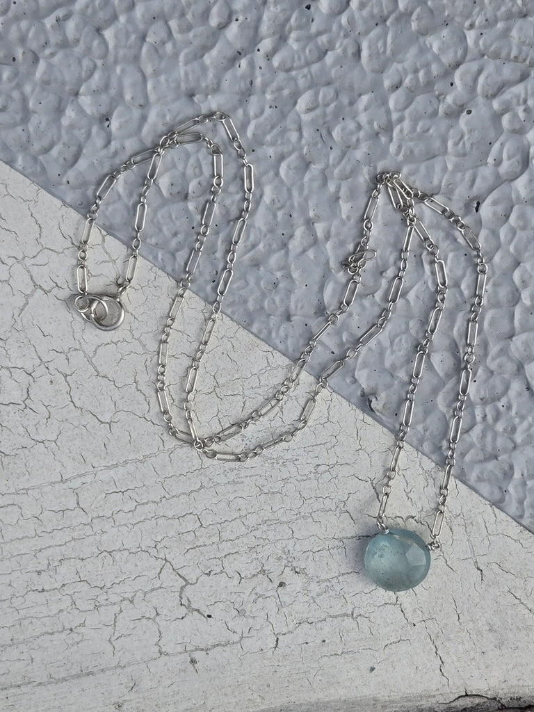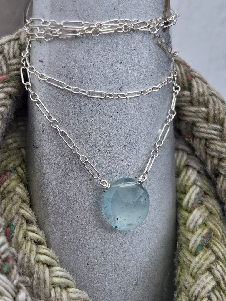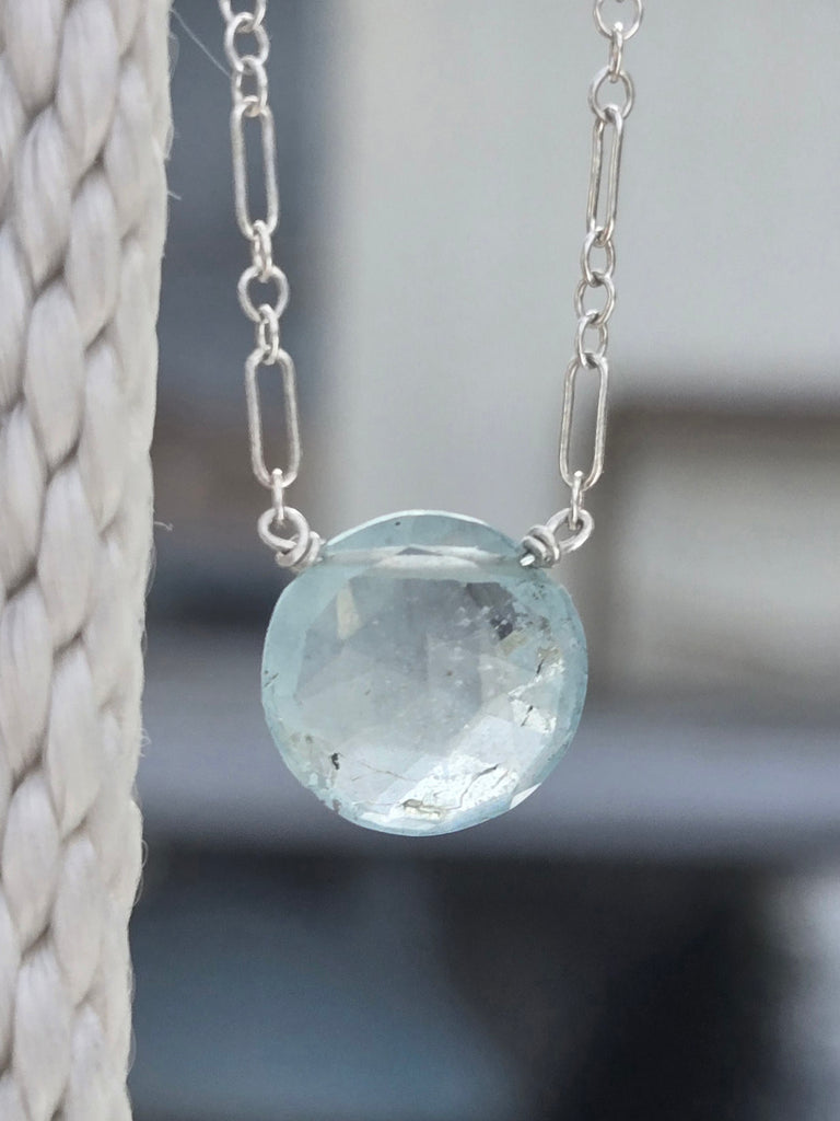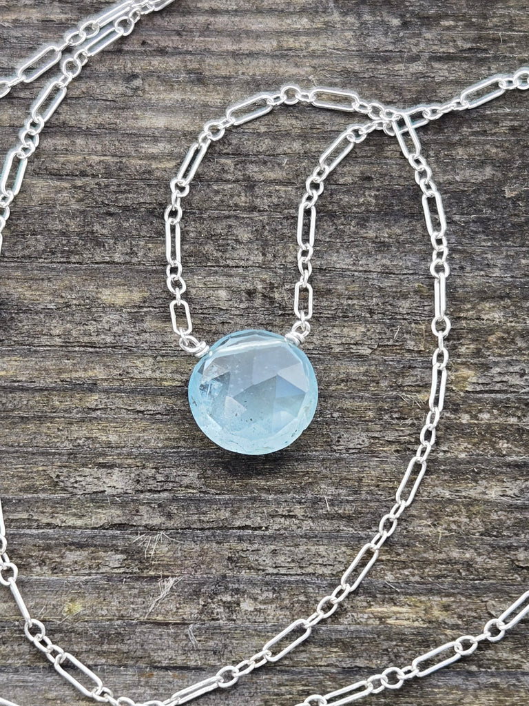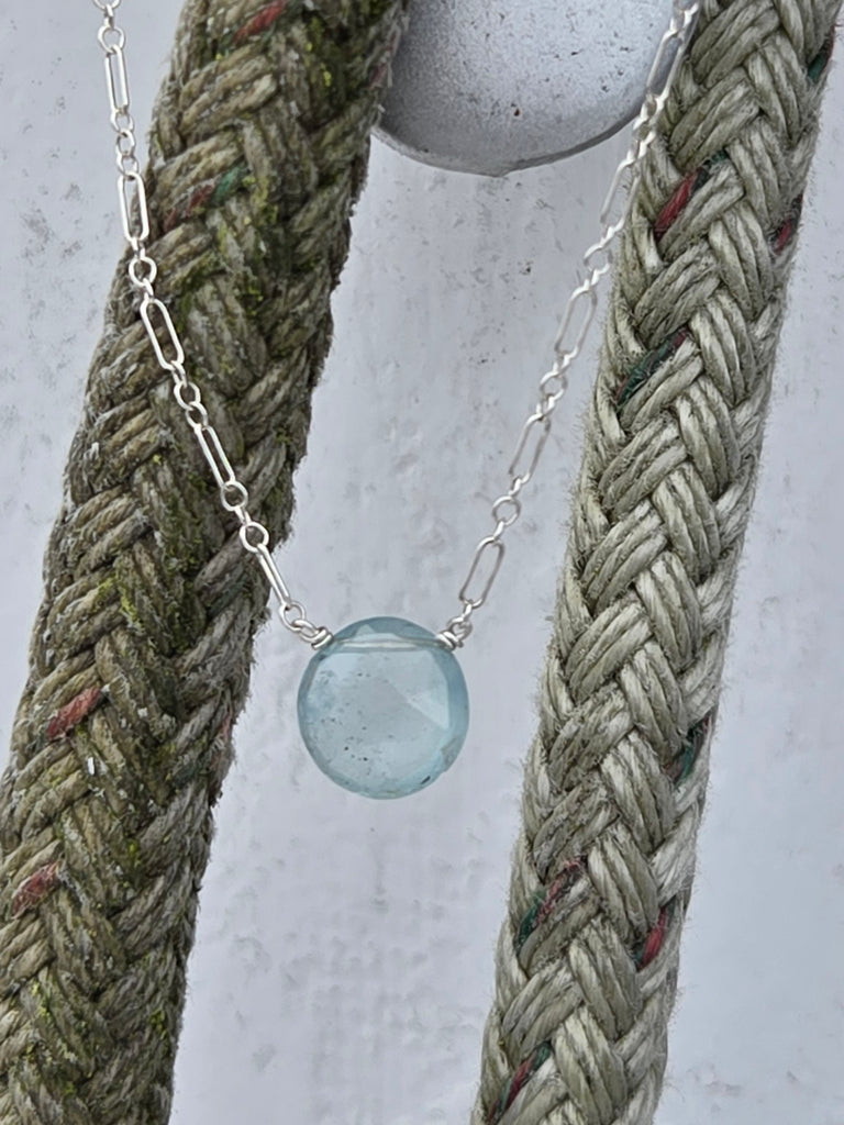 Aquamarine Faceted Disc Sterling Silver Necklace