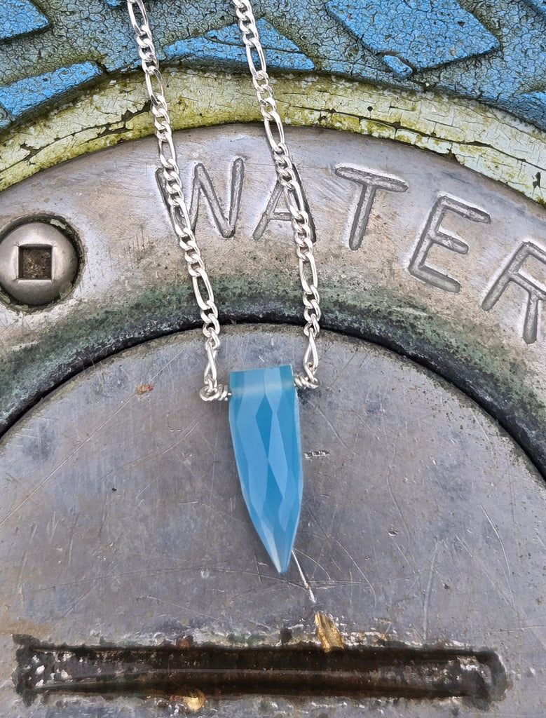 Blue Chalcedony Faceted Bullet Sterling Silver Necklace