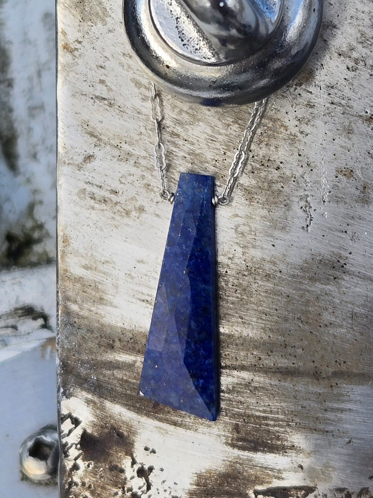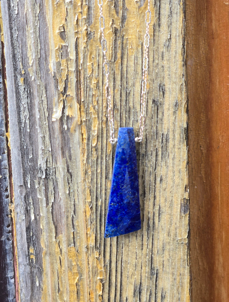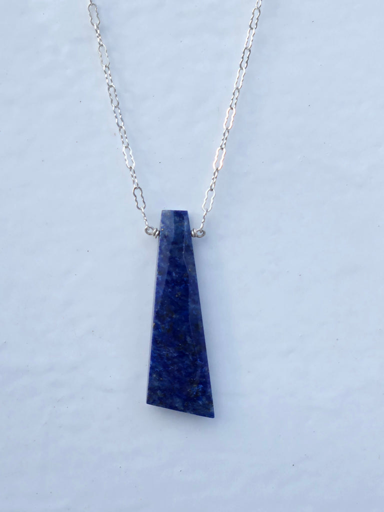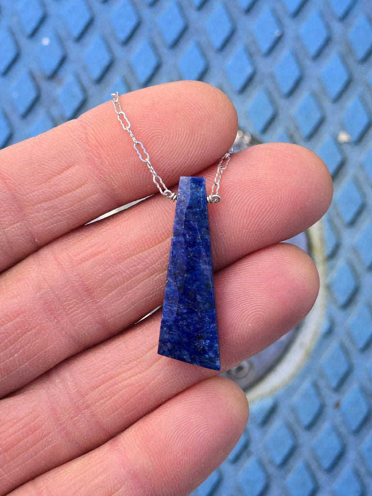 Lapis Lazuli Faceted Drop Sterling Silver Necklace